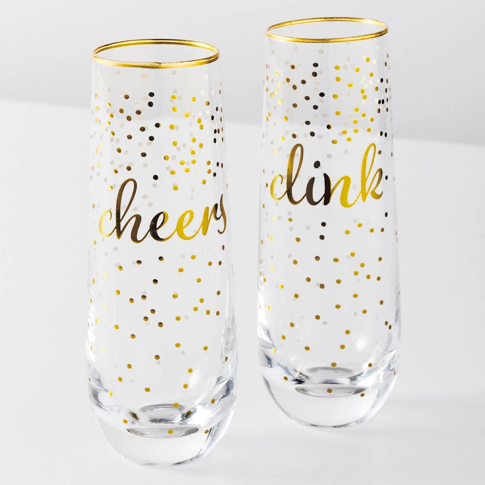 - Features decorative messages that say ‘Cheers’ and ‘Clink’ in gold script