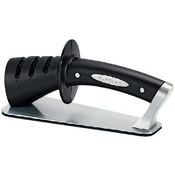 This Scanpan knife sharpener is great for everything from keeping your knives in tip top condition every day to bringing blunt knives back to life. Use the Tungsten Sharpener to regenerate blunt blades, the Diamond Sharpener on your knives every 2-3 months, and the Ceramic Sharpener everyday to get the most out of your knives.